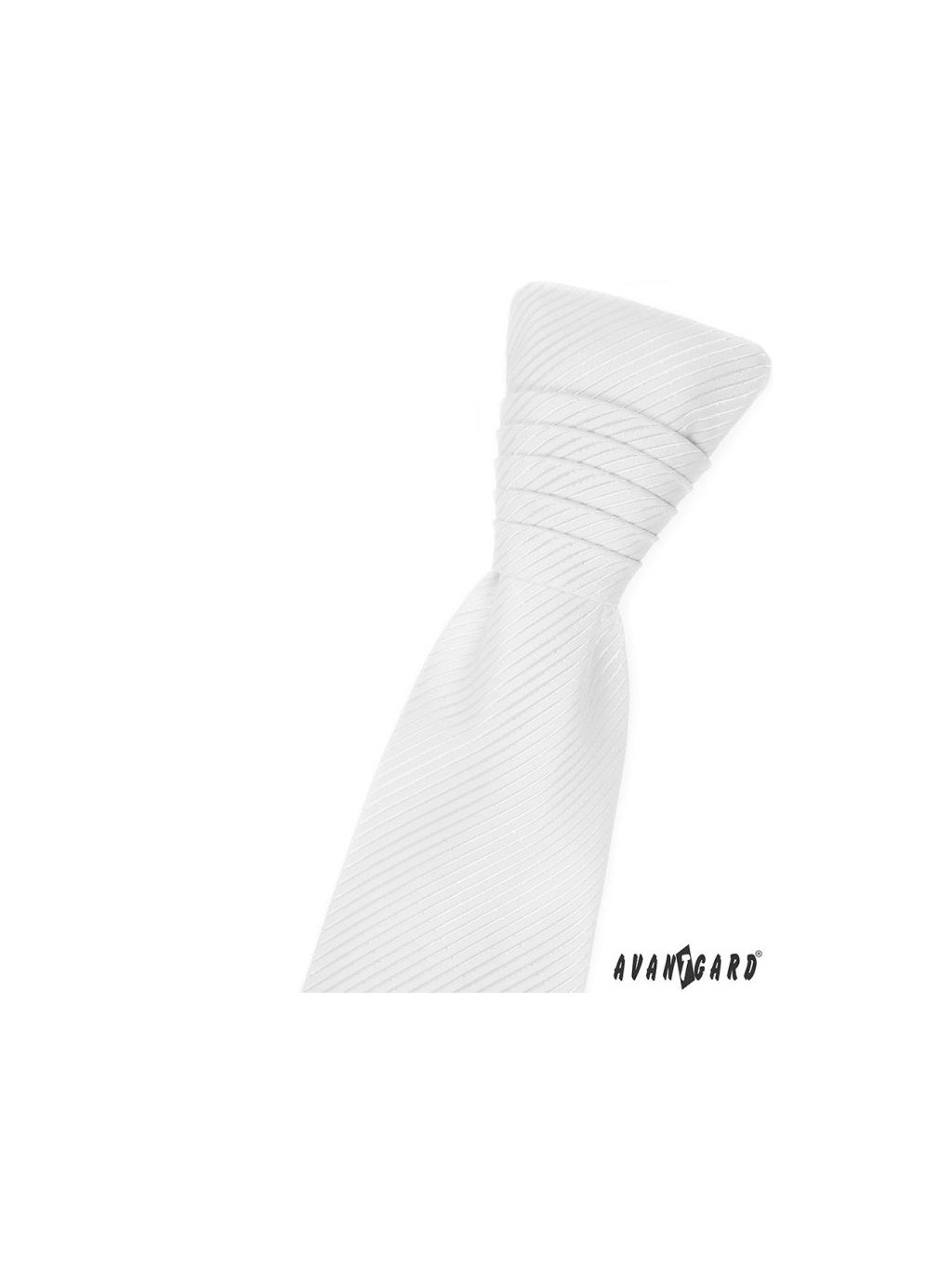 Bílá pánská regata s proužky je 9 cm široká a 51 cm dlouhá.