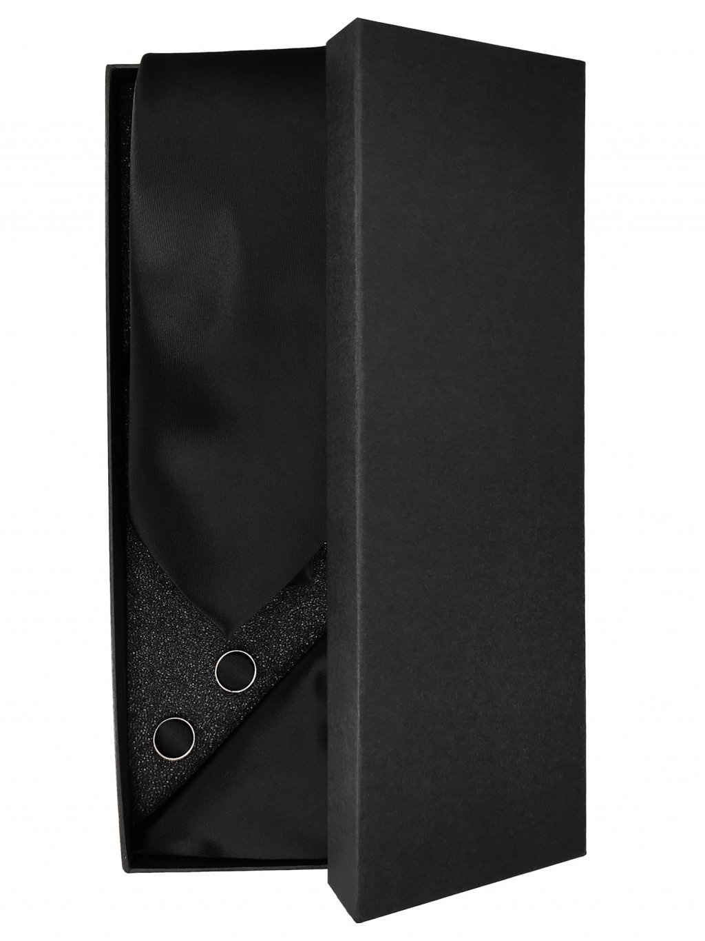 Černá jemně lesklá pánská kravata je vyrobena je 8 cm široká a je vyrobena ze 100% polyesteru.