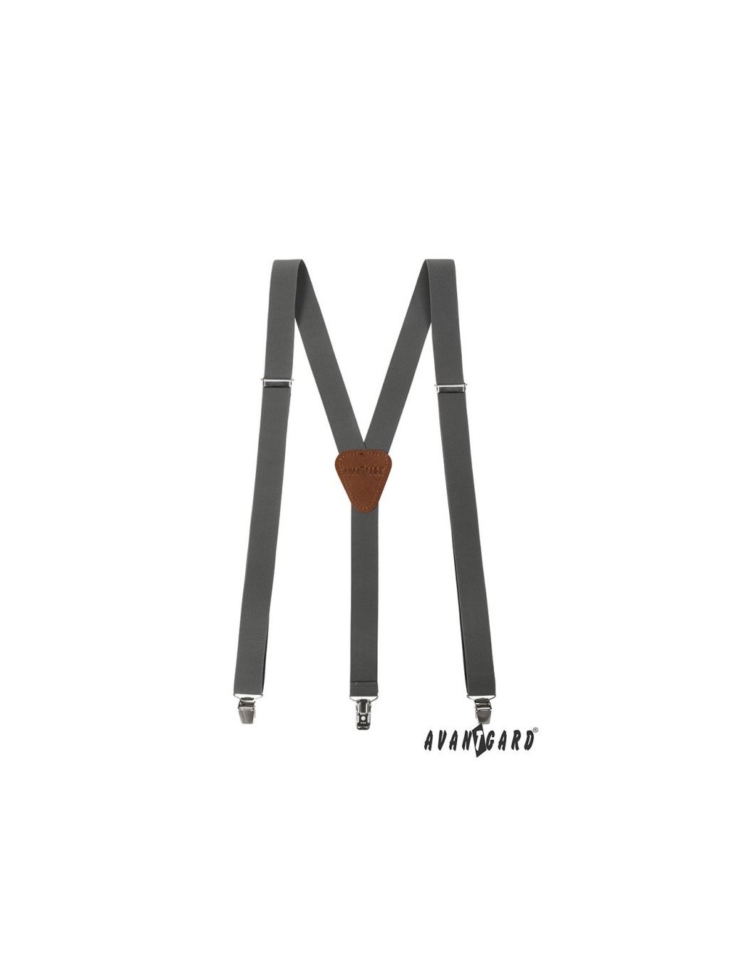 Grafitové pánské kšandy s hnědým středem mají uchycení na klipy.