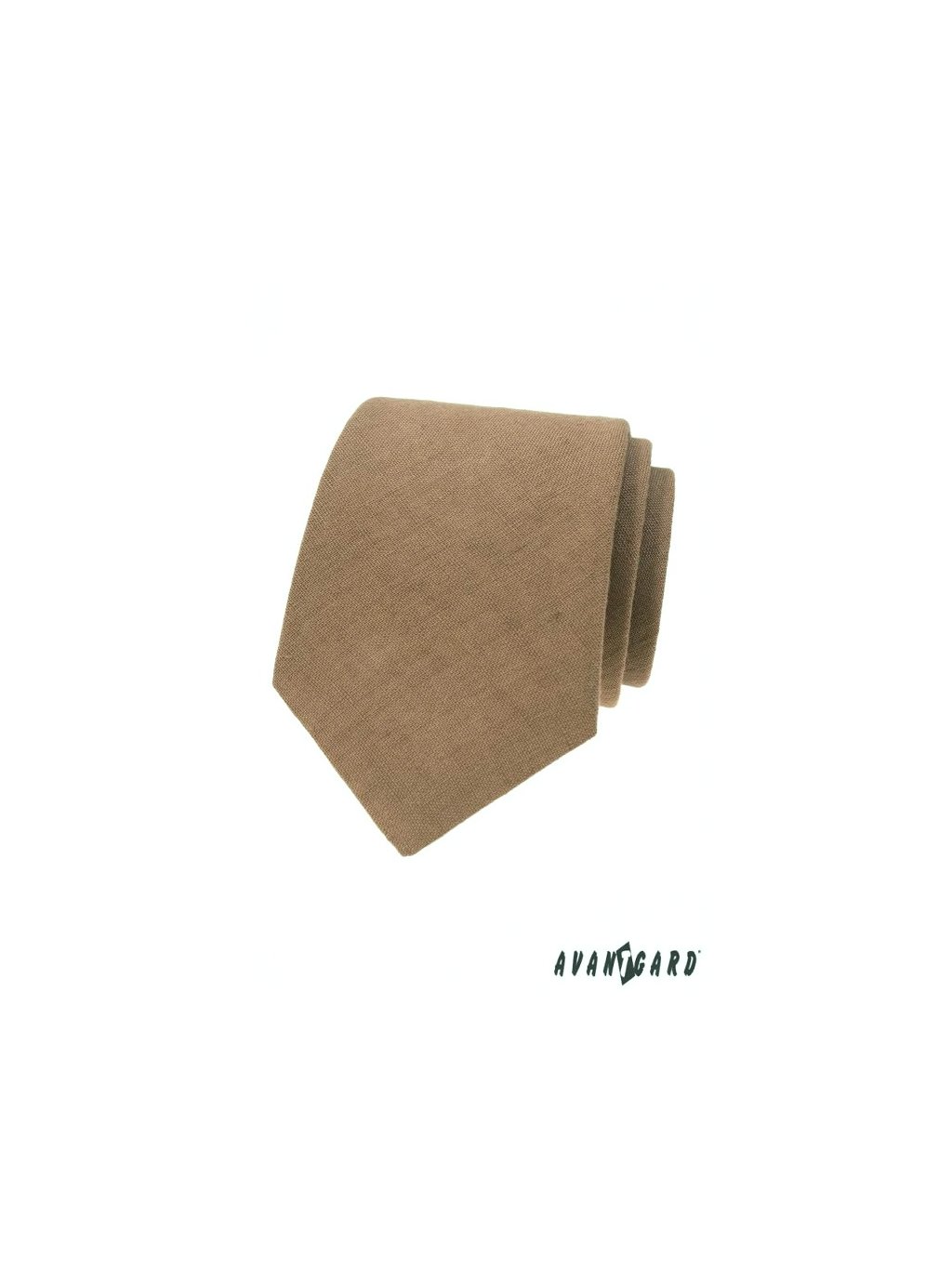 Hnědá lněná pánská kravata je 7 cm široká a je vyrobena ze 100% lnu.