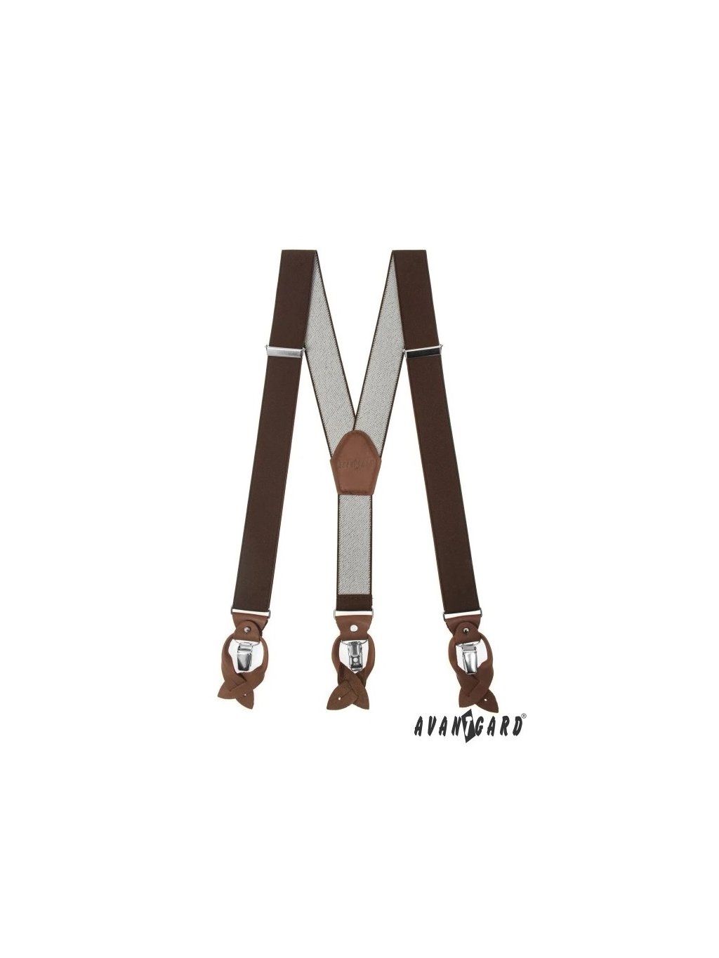 Hnědé široké pánské kšandy s klipy i koženými poutky a hnědým středem