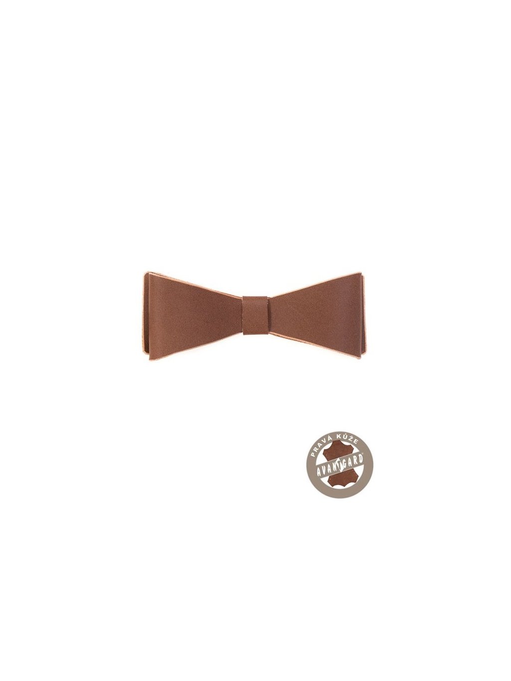 Hnědý kožený pánský motýlek je 12 cm široký.