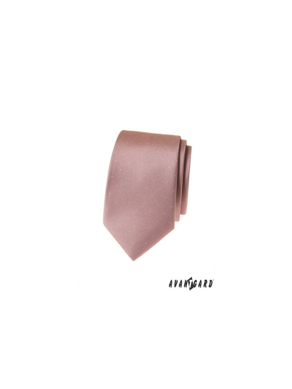 Pudrová luxusní pánská slim kravata s jemnými tečkami