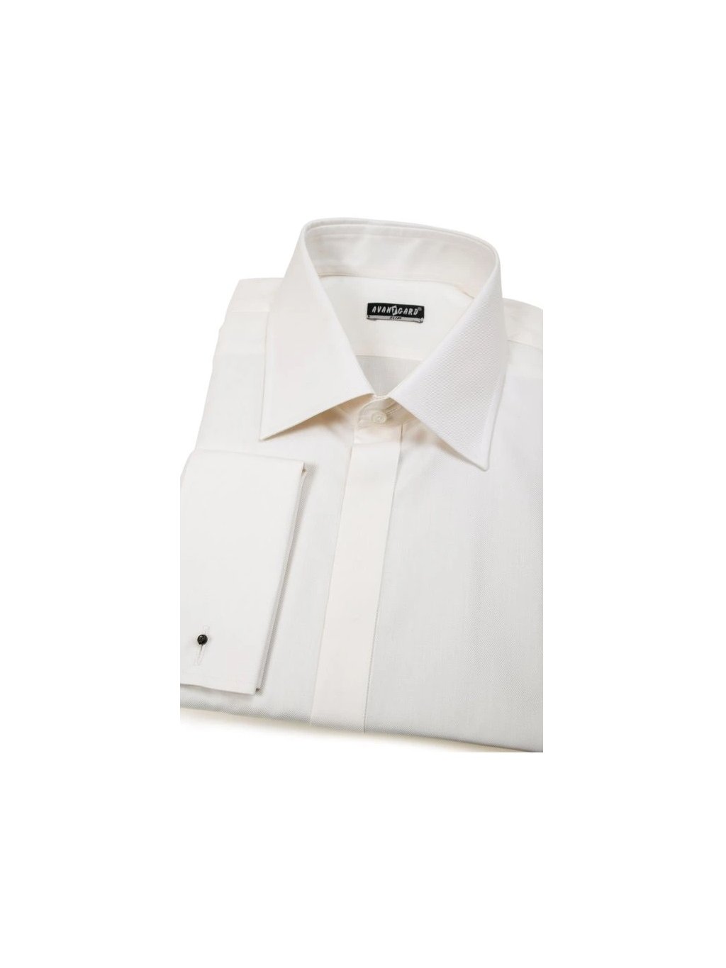 Smetanová bavlněná pánská slim fit košile na manž. knoflíčky s krytou légou je vyrobena ze 100% bavlny.