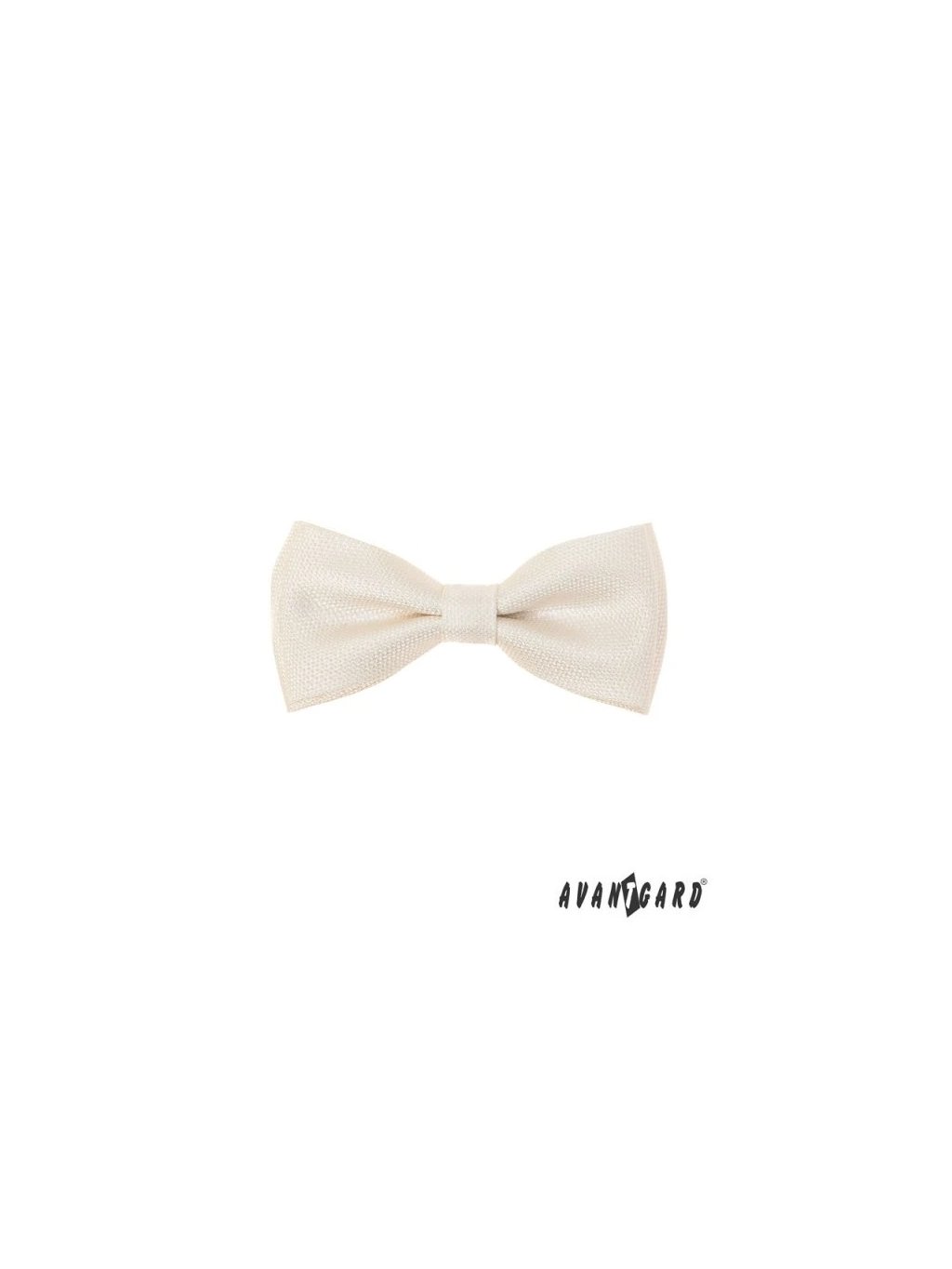 Smetanový pánský motýlek se vzorovanou strukturou je předvázaný a ke krku ho upevníte pomocí pásku, jehož délku můžete regulovat.