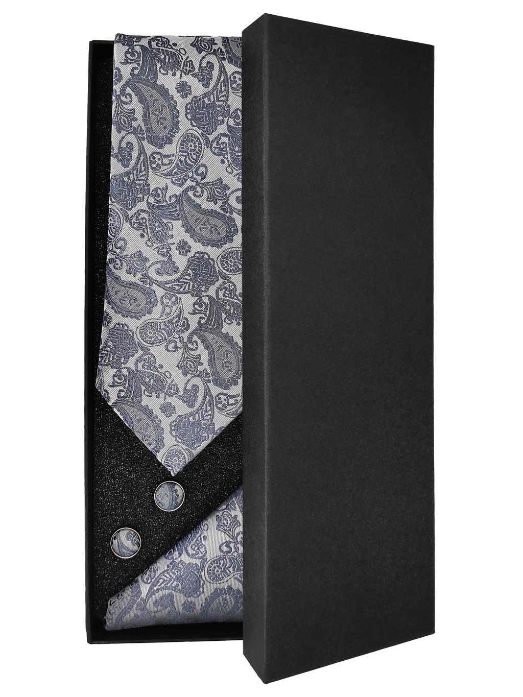 Dárková sada obsahuje kapesníček do saka a manžetové knoflíčky ve stejné barvě.