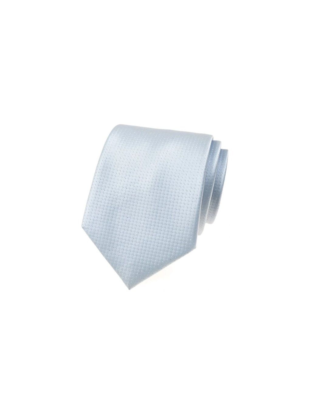 Světle modrá luxusní pánská kravata se stříbrným vzorkem je 7 cm široká a je vyrobena ze 100% polyesteru.