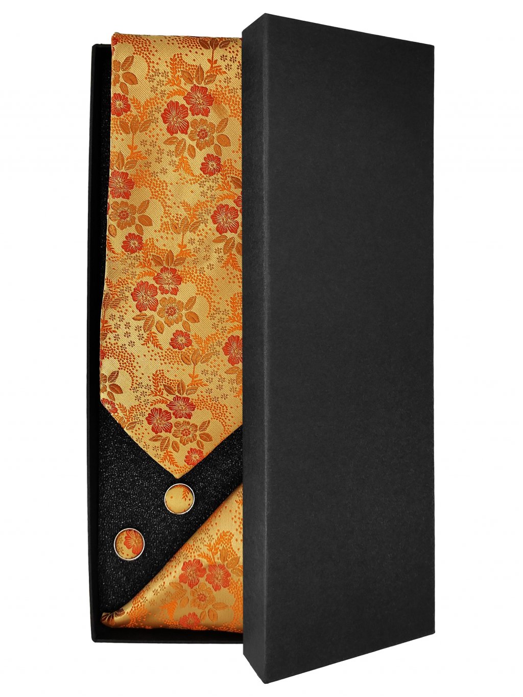 Světle oranžová pánská kravata se vzorem - Dárková sada