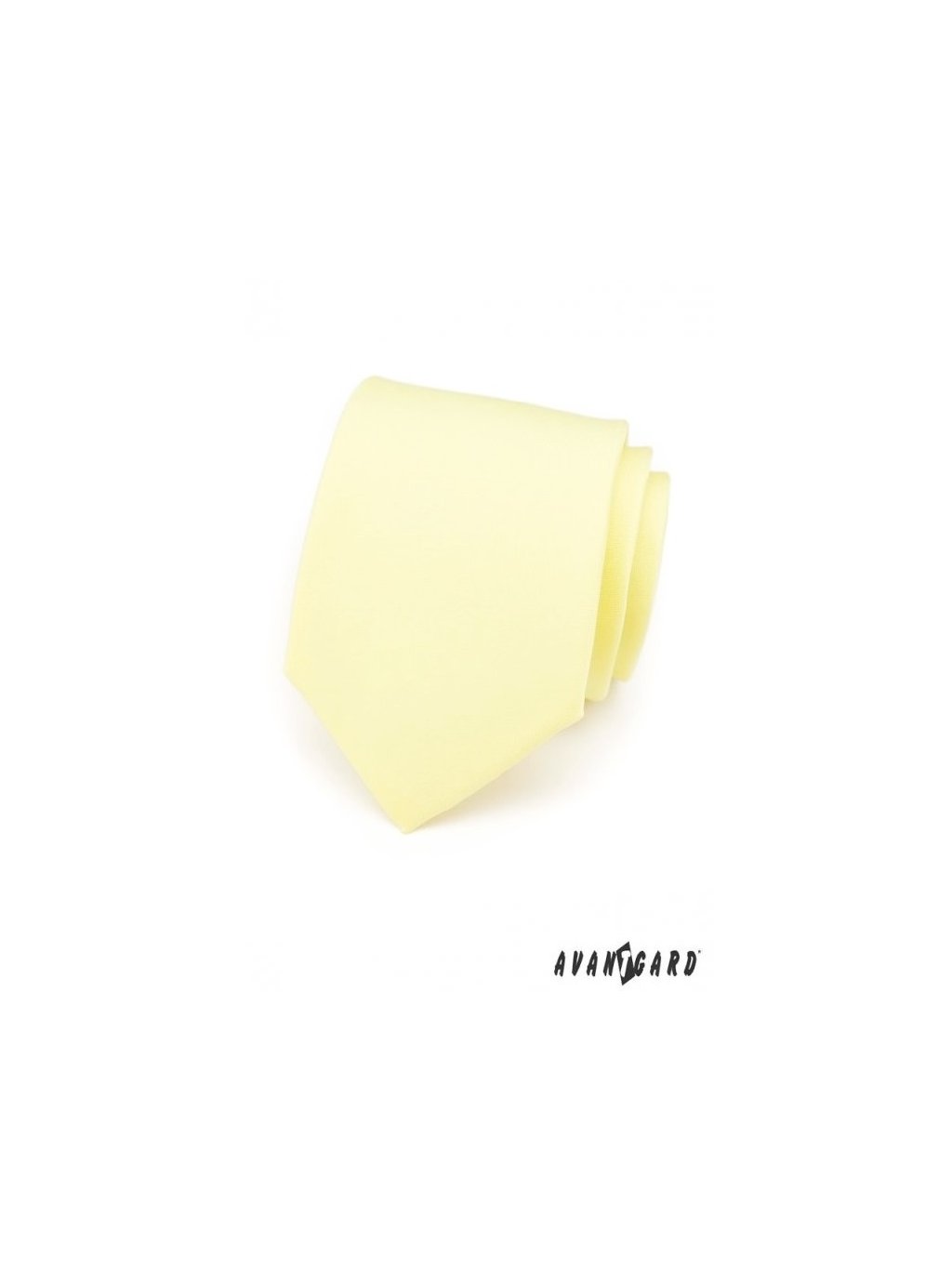 Světle žlutá pánská kravata je 7 cm široká a je vyrobena ze 100% polyesteru.