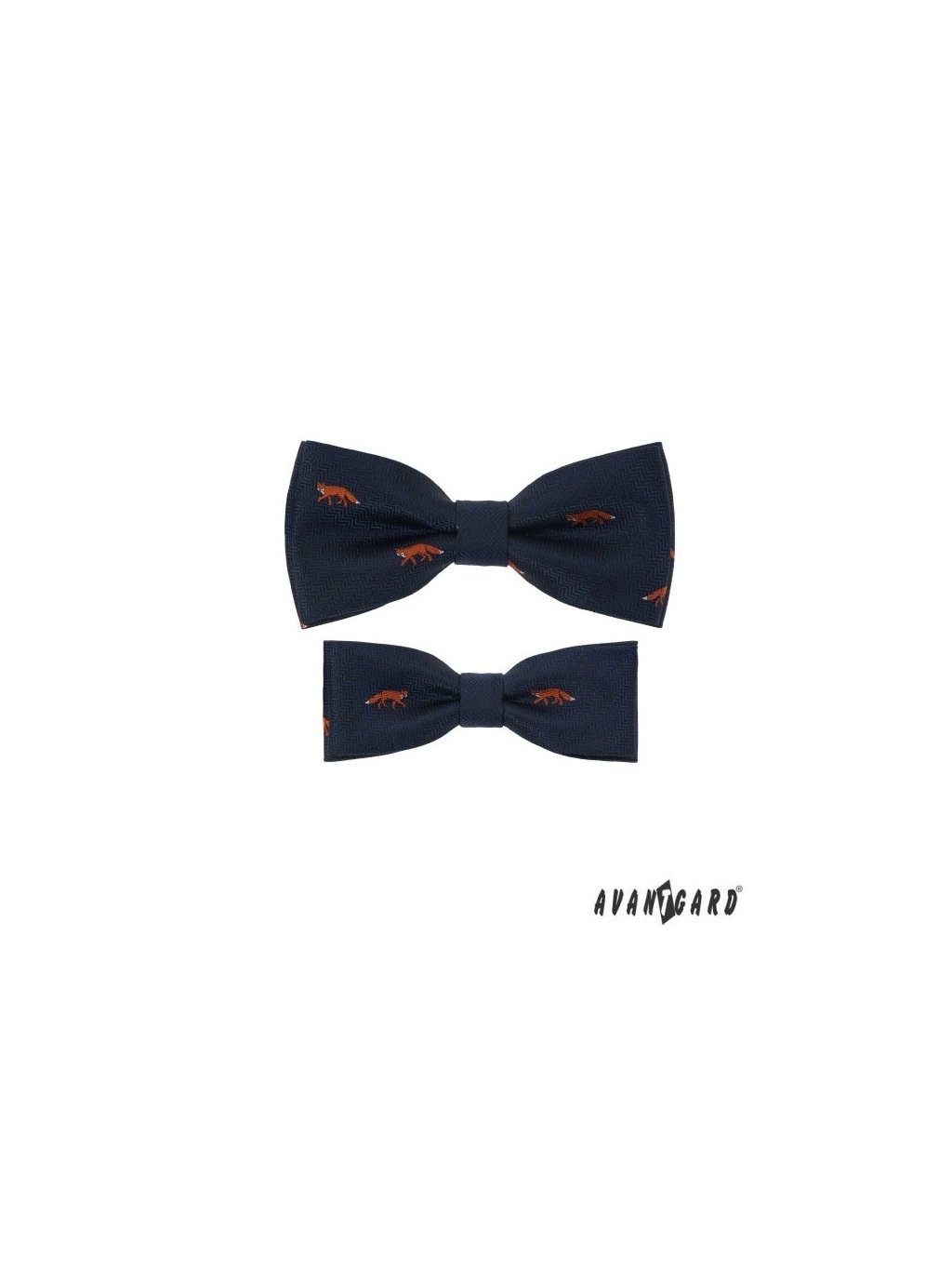 Tmavě modrá sada pánského a dětského motýlku – Liška