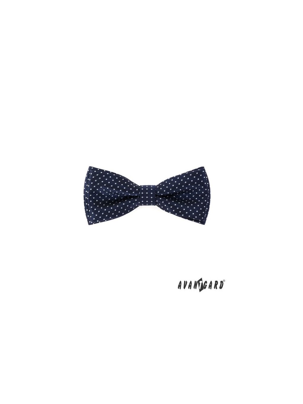 Tmavě modrý pánský motýlek s bílým vzorkem + kapesníček do saka