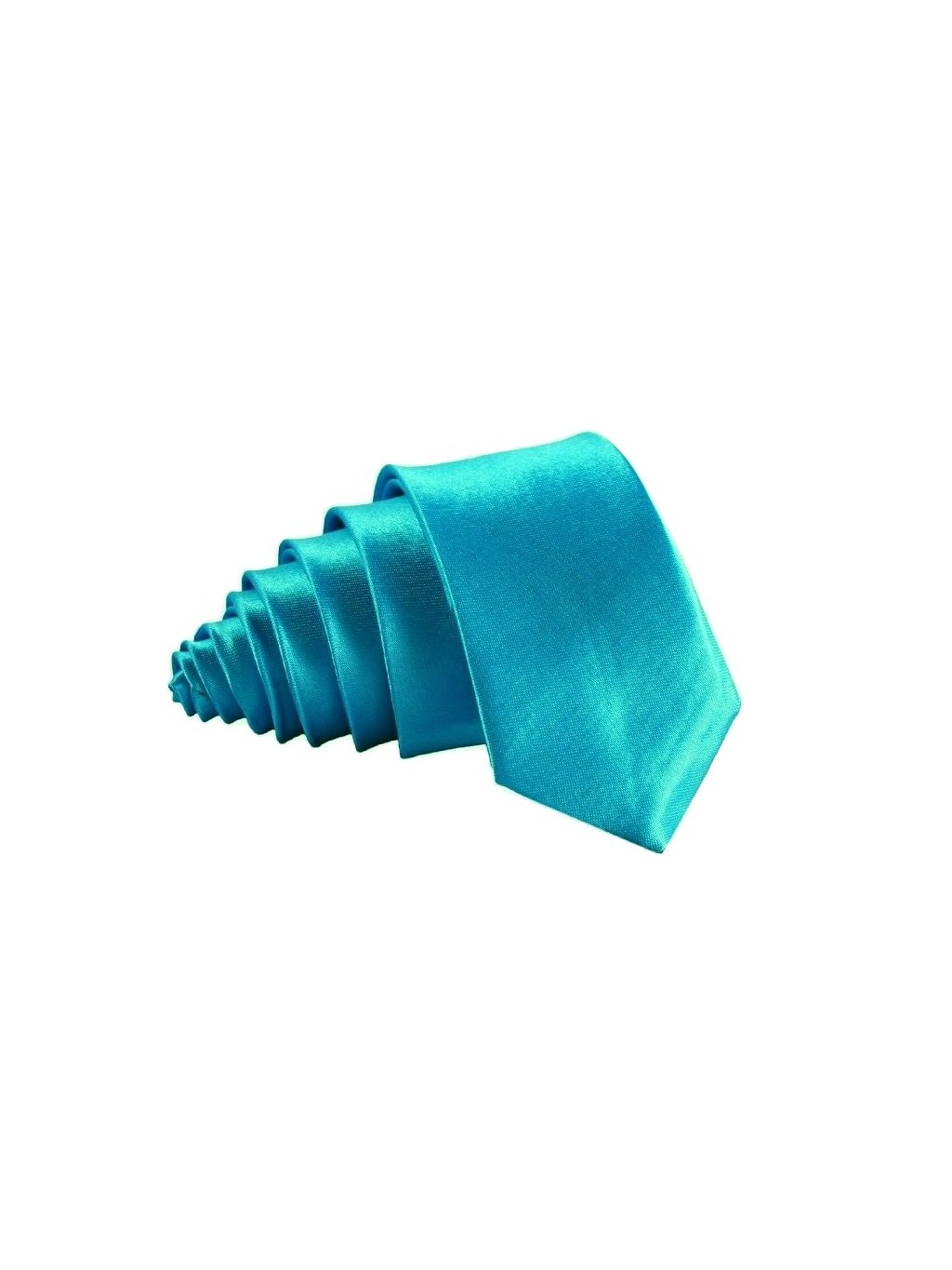 Tyrkysová lesklá pánská slim kravata je 5 cm široká a 145 cm dlouhá.