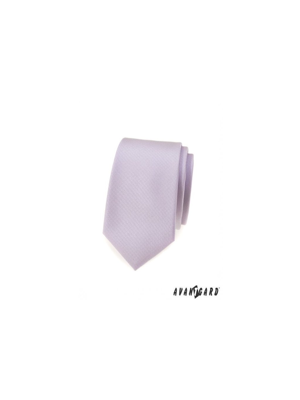 Velmi světle lila luxusní pánská slim kravata je 5 cm široká a je vyrobena ze 100% polyesteru.