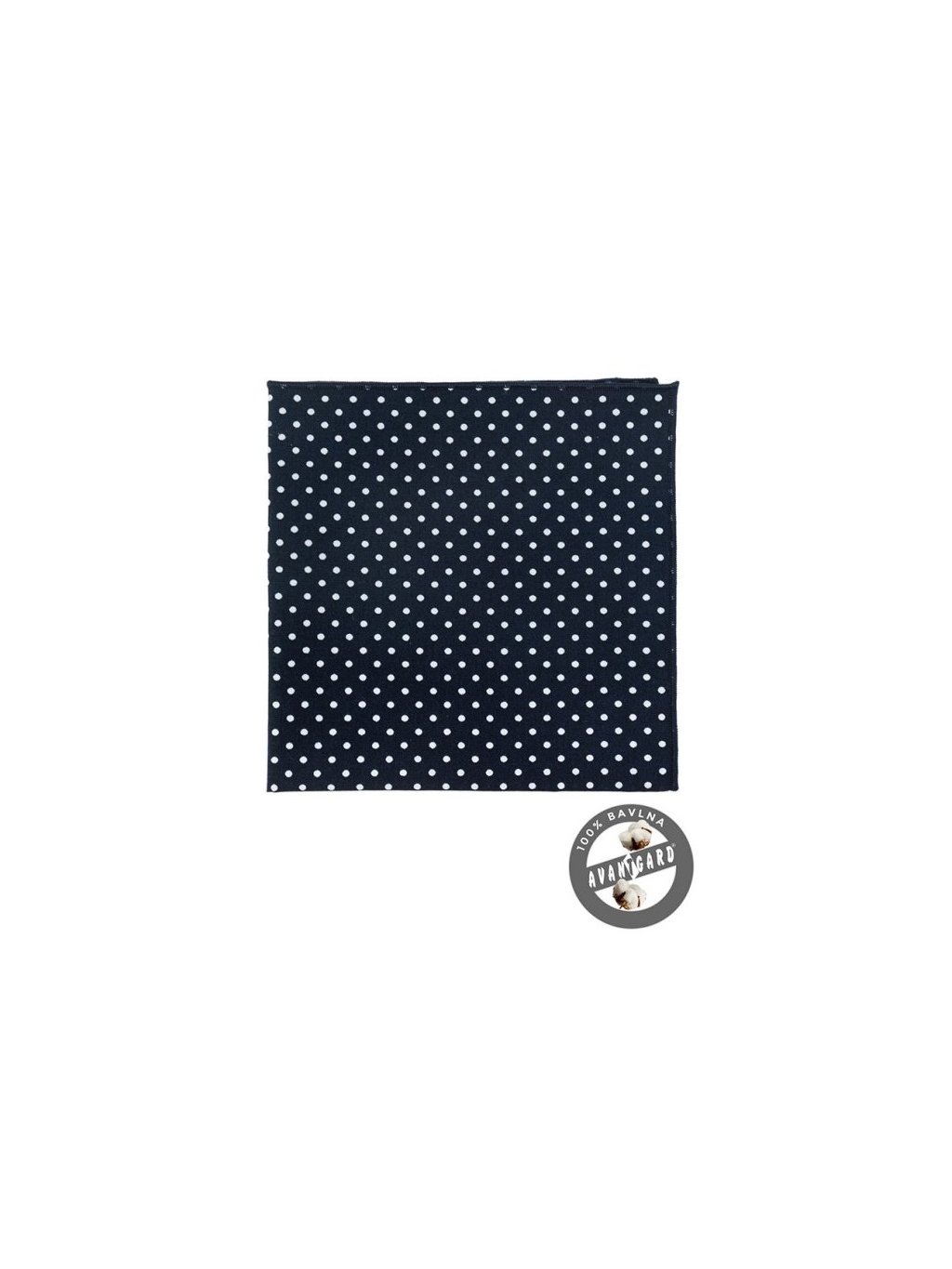 Velmi tmavě modrý luxusní kapesníček do saka s puntíky je výrobek české značky Avantgard.